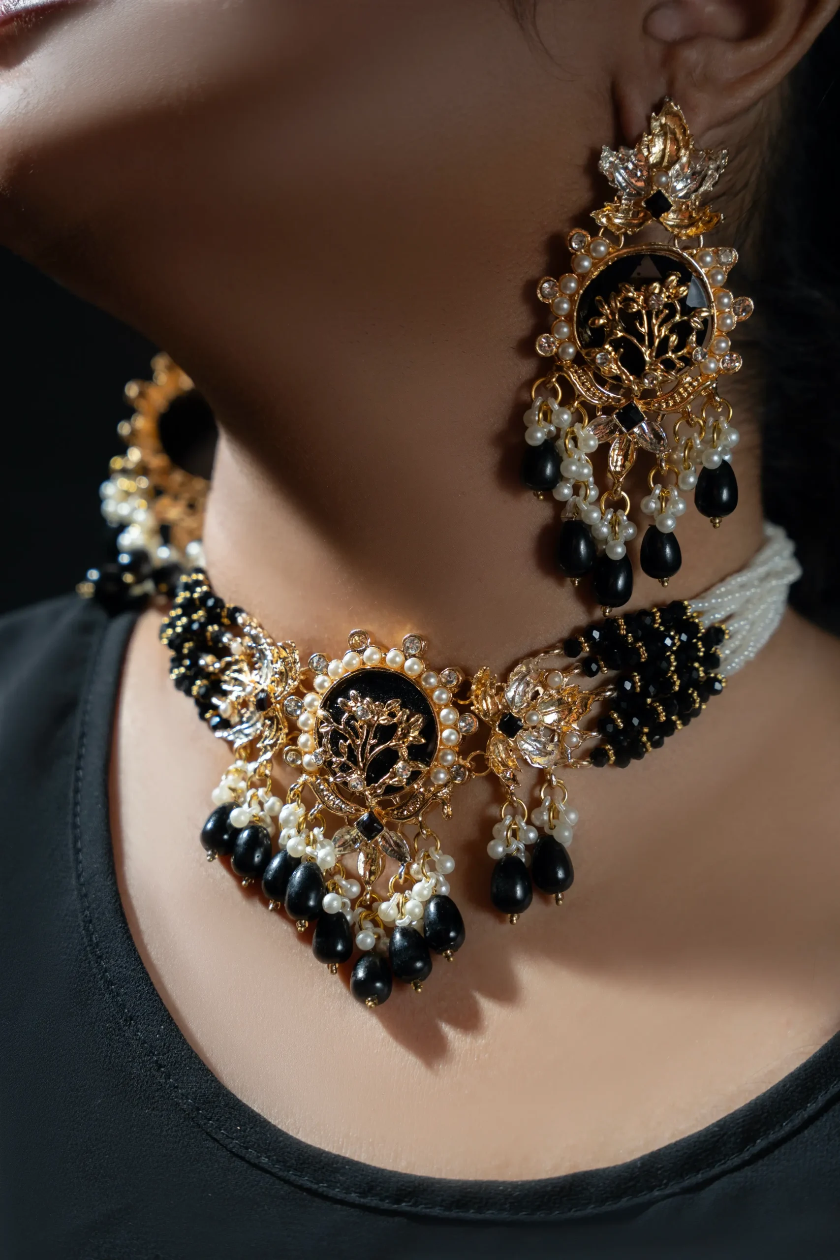 A bold and elegant  beaded choker with matching earrings, beautifully crafted to add a touch of glamour and sophistication to your festive or bridal look.